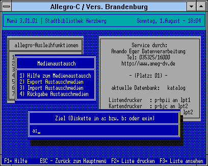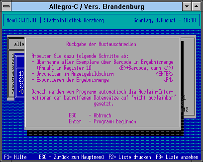 - Nutzung des Biblliotheksprogramms allegro-C in der Version für öffentliche Bibliotheken